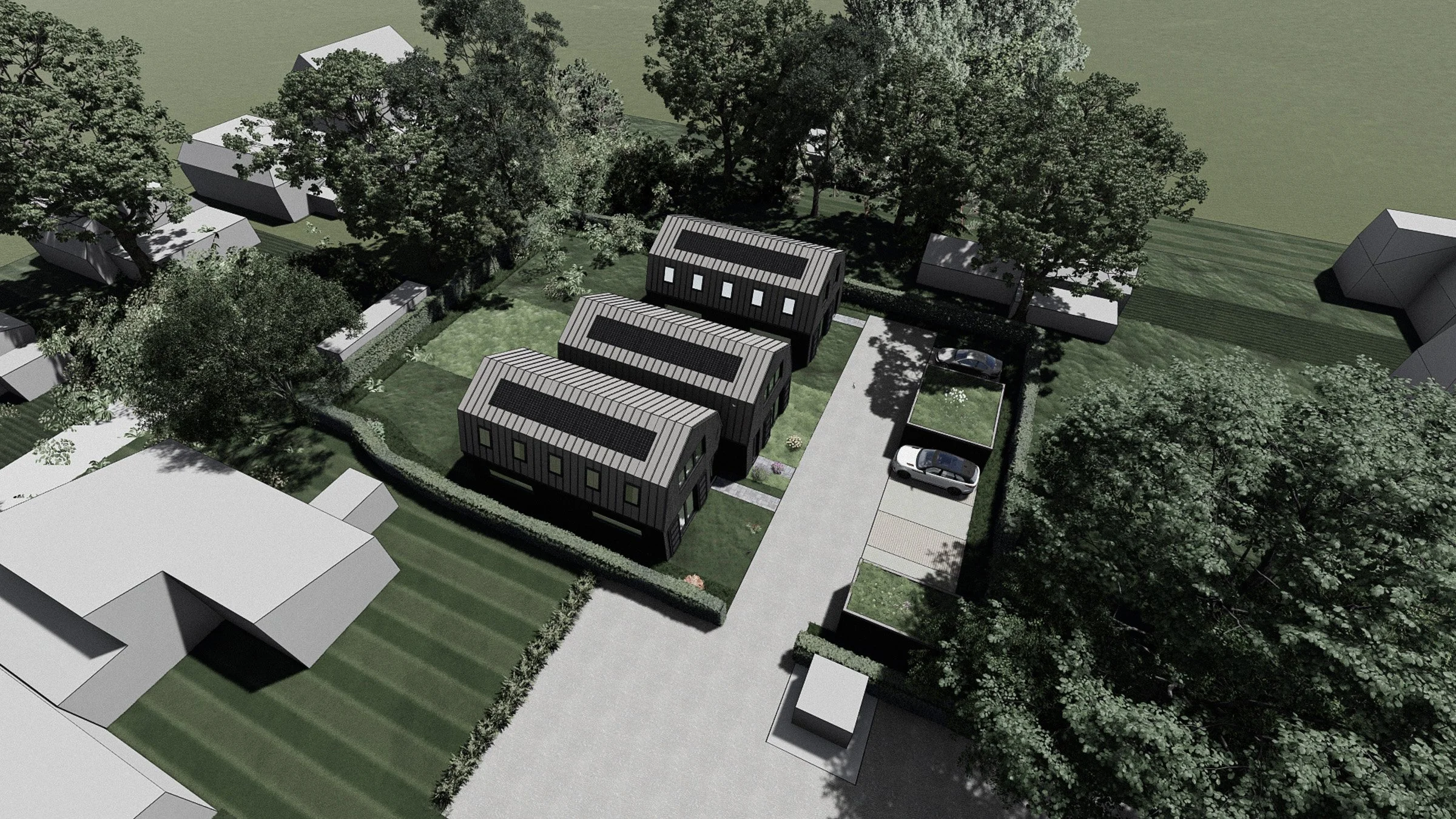 Drie nieuwbouw schuurwoningen